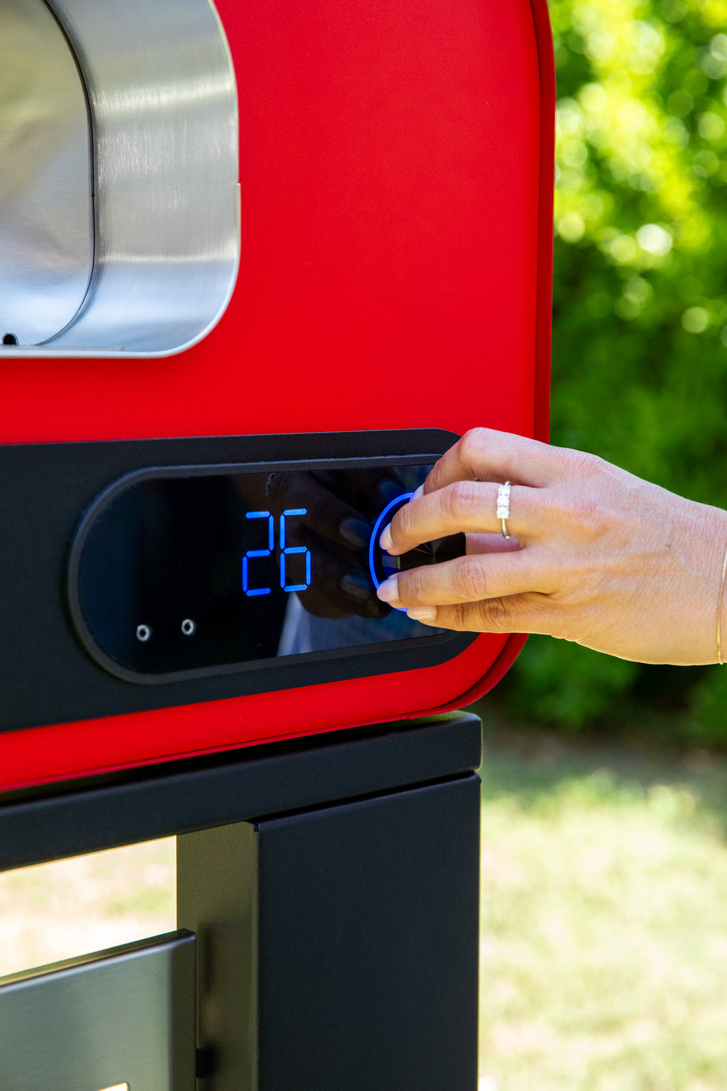 Med det integrerede digitale frontdisplay får du fuld kontrol over både temperatur og tilberedningstid. Den elektroniske styring regulerer automatisk gasflammen, så ovnen konstant holder den ønskede temperatur. Via Fontana-appen kan du nemt styre udeovnen direkte fra din smartphone og justere indstillinger.